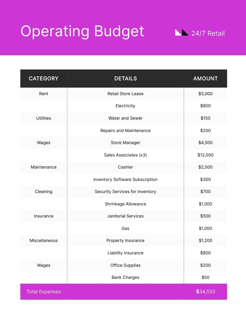 Retail Monthly Operating Budget Template Visme