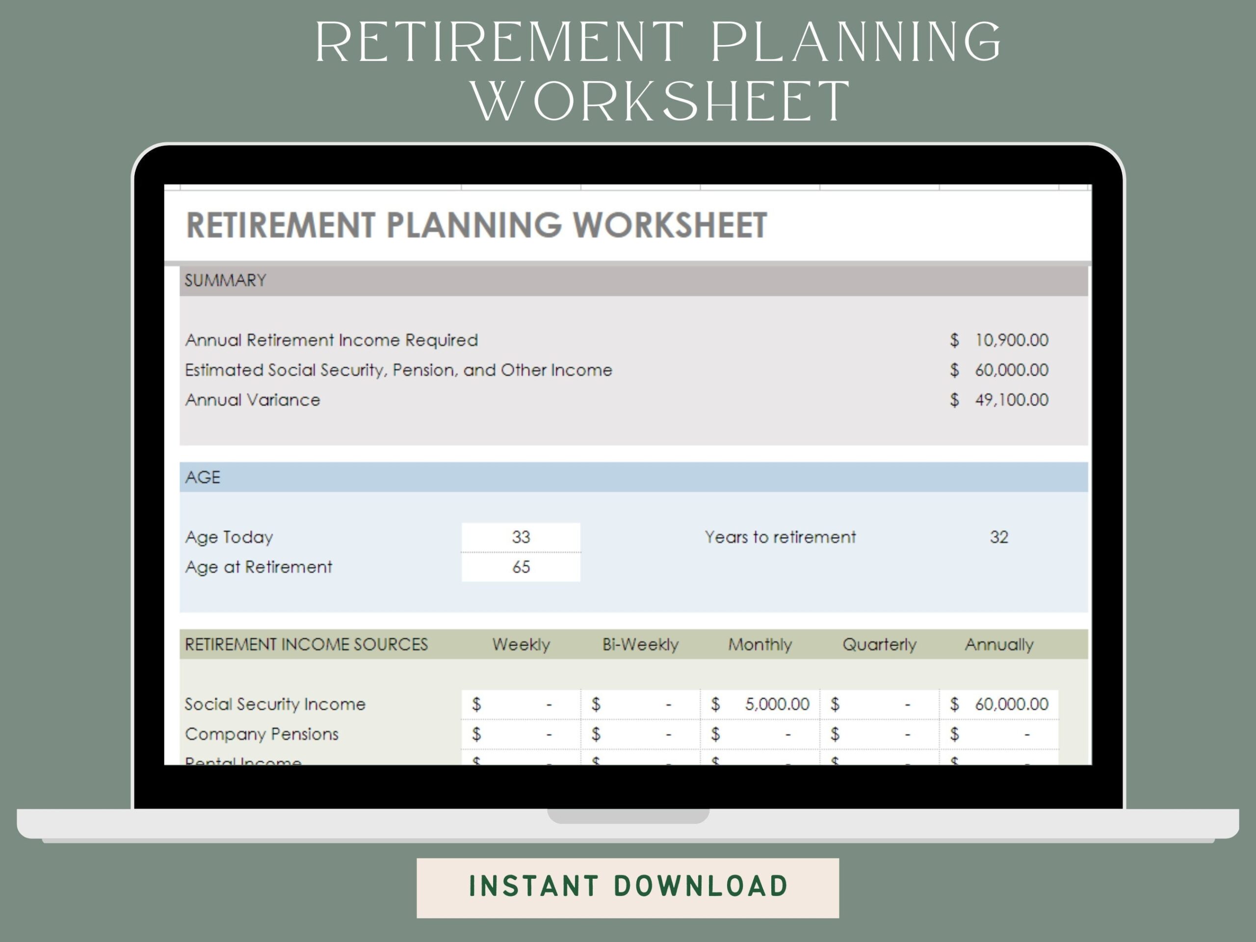 Retirement Planner Using Microsoft Excel Instant Downloadable Finance Planner Digital Planner Spreadsheet Template Etsy UK