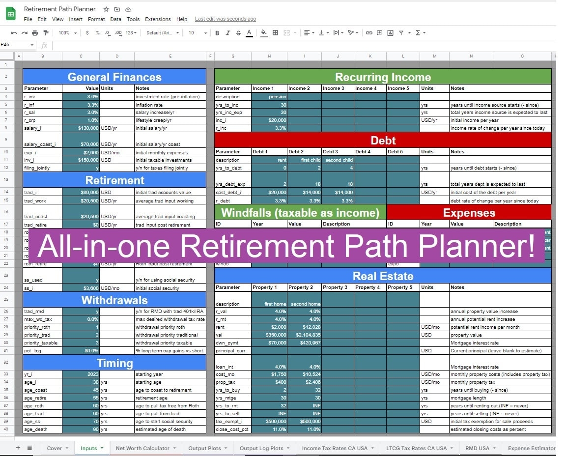 Retirement Planner V2 1 All in one Retirement Financial Planning Google Sheet And Excel Template Etsy