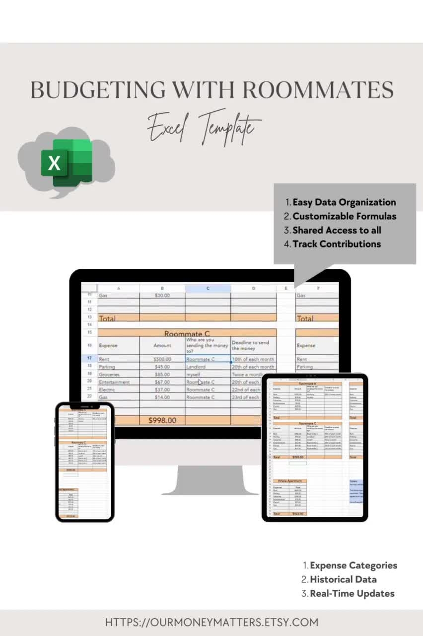 Roommate Budgeting Tracker Budgeting Template Expense Planner Budget Spreadsheet Saving Tracker Budgeting Tracker Finance Tracker