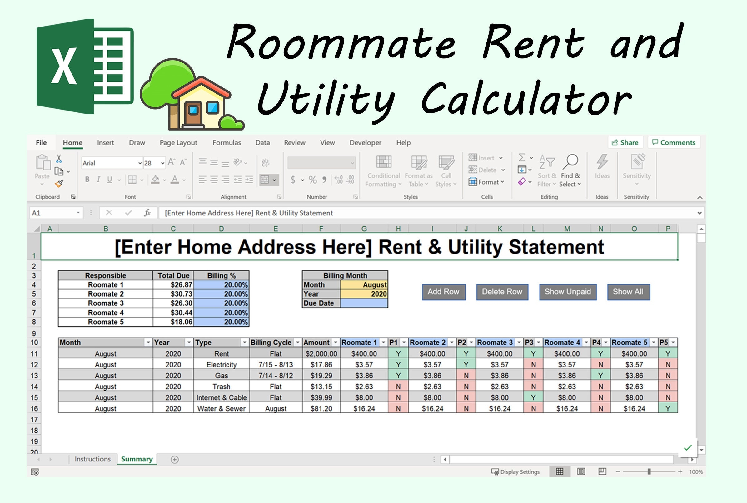 Split Rent U0026 Utility Roommate Expenses Calculator Template Excel Spreadsheet 5 Roommate Template