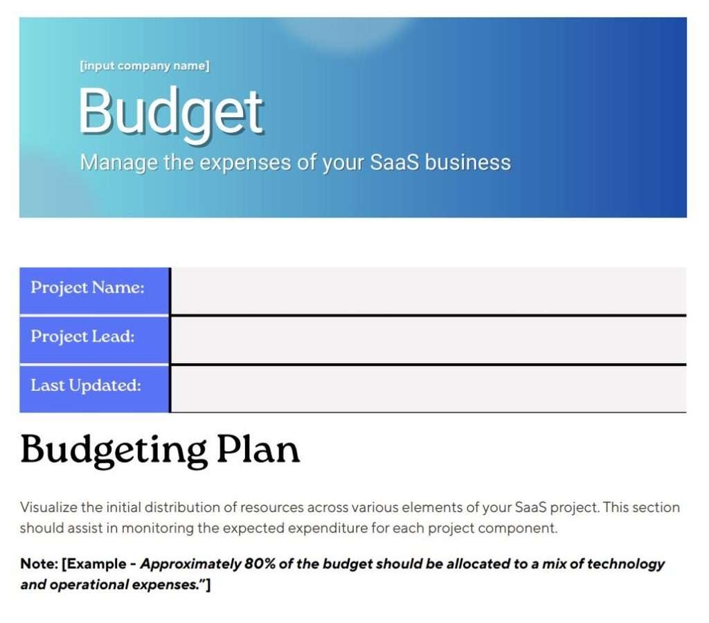 SaaS Startup Budget Template Excel Doc Free Download