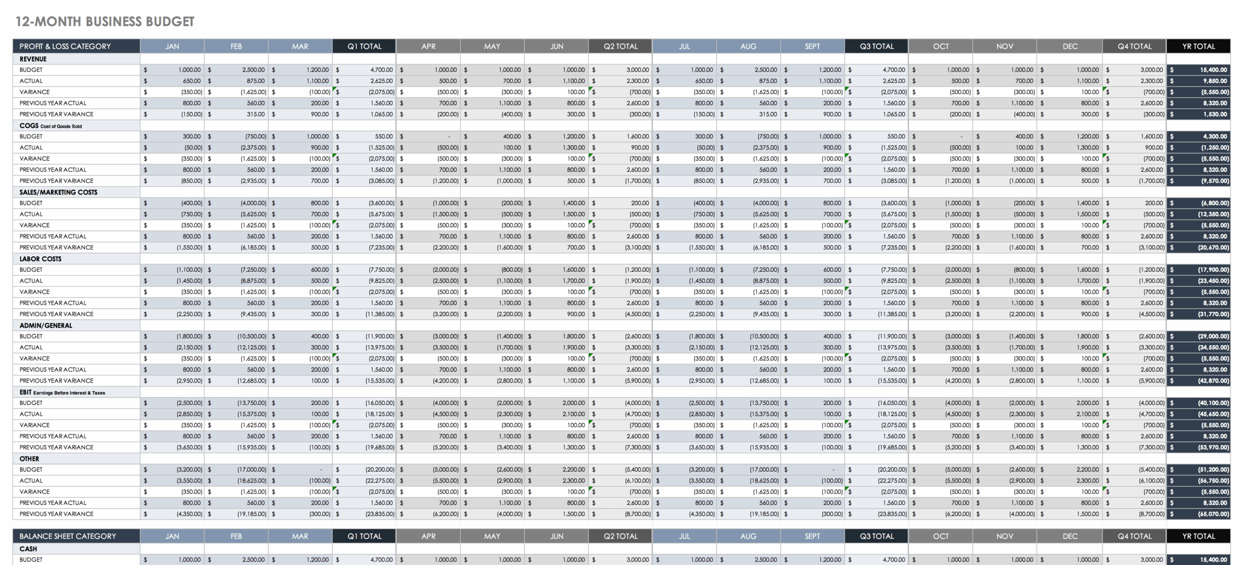 Free Small Business Budget Templates Smartsheet