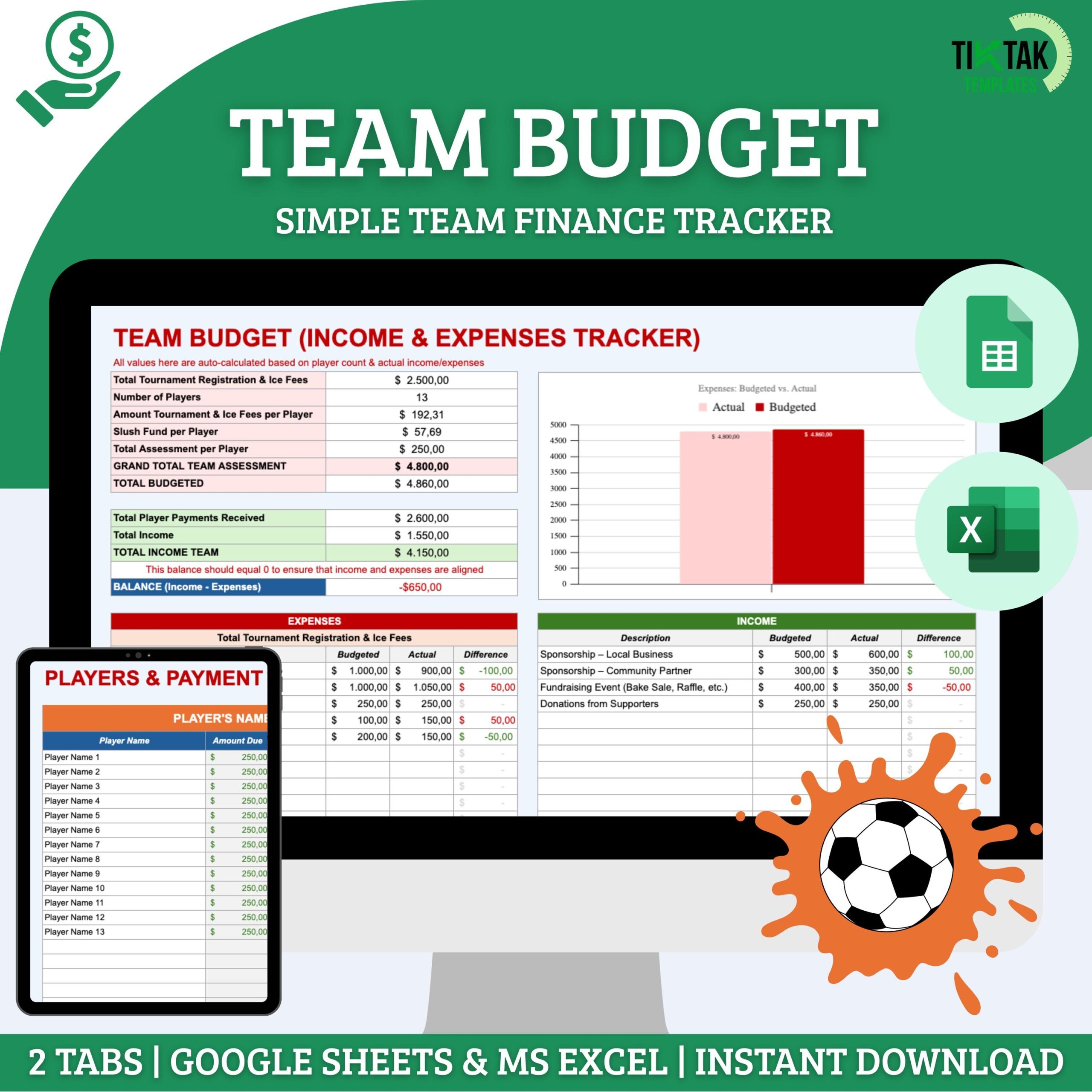 Sports Team Budget Template Sports Budget Template Youth Sports Travel Team Spreadsheet Template Sports Team Manager Budget Spreadsheet Etsy
