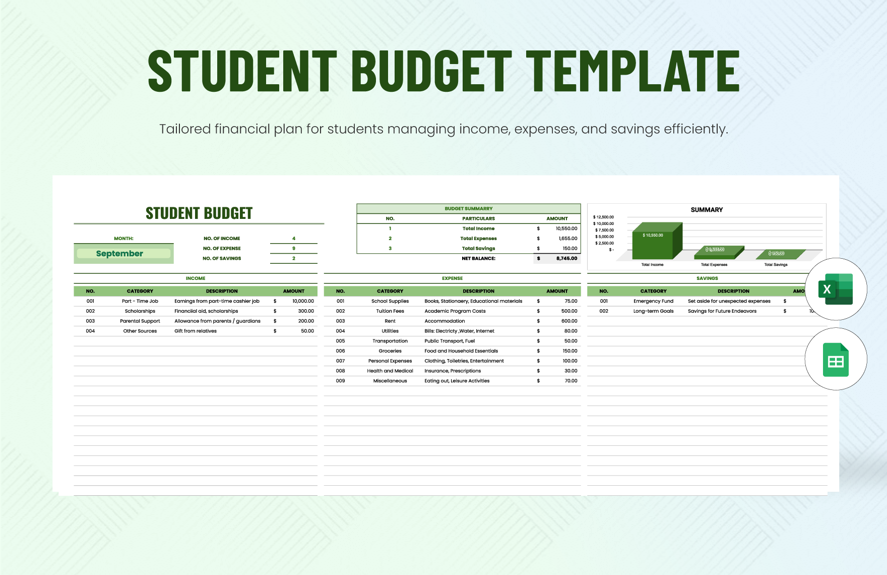 Student Budget Spreadsheet Template