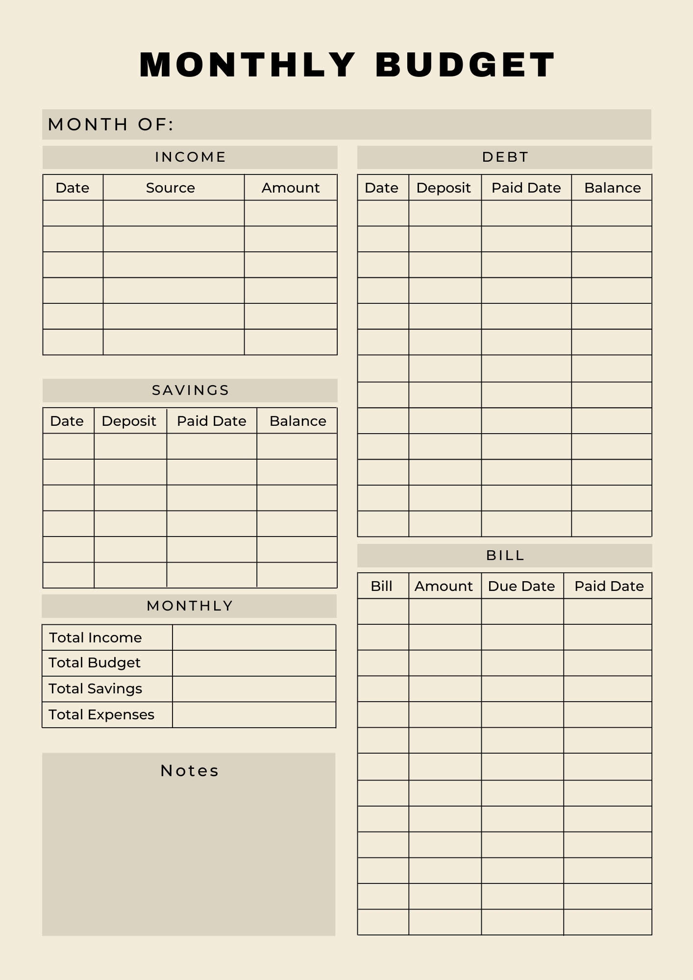 Printable Brown Monthly Budget Planner Monthly Income U0026 Expense Recorder Monthly Budget Printable PDF A4 Instant Download