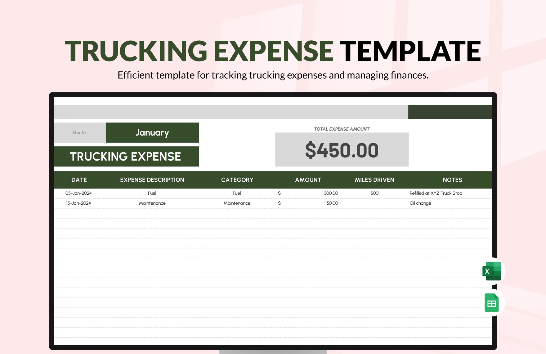 Truck Expense Tracker Truck Driver Trucking Spreadsheet