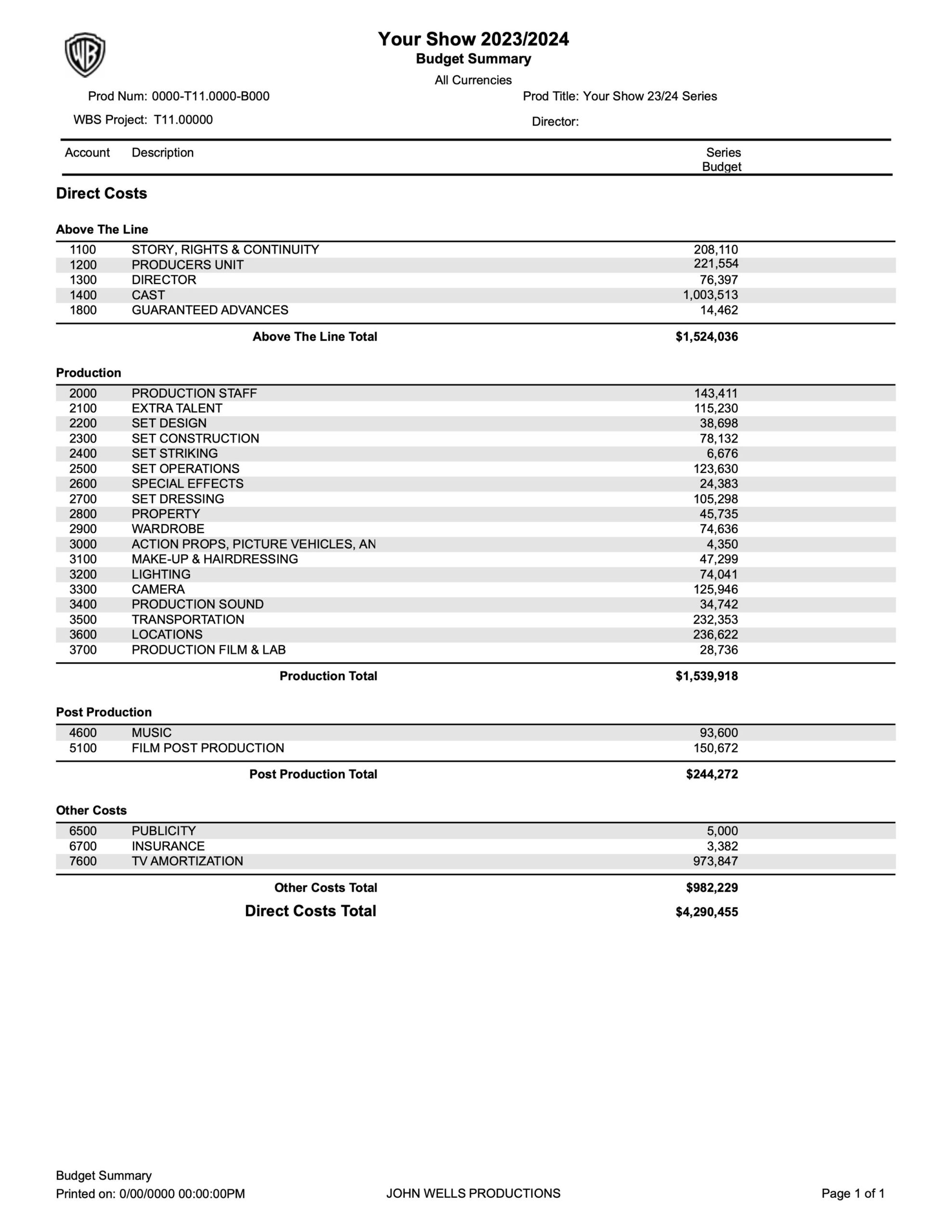 Tv Show Budget Breakdown Template