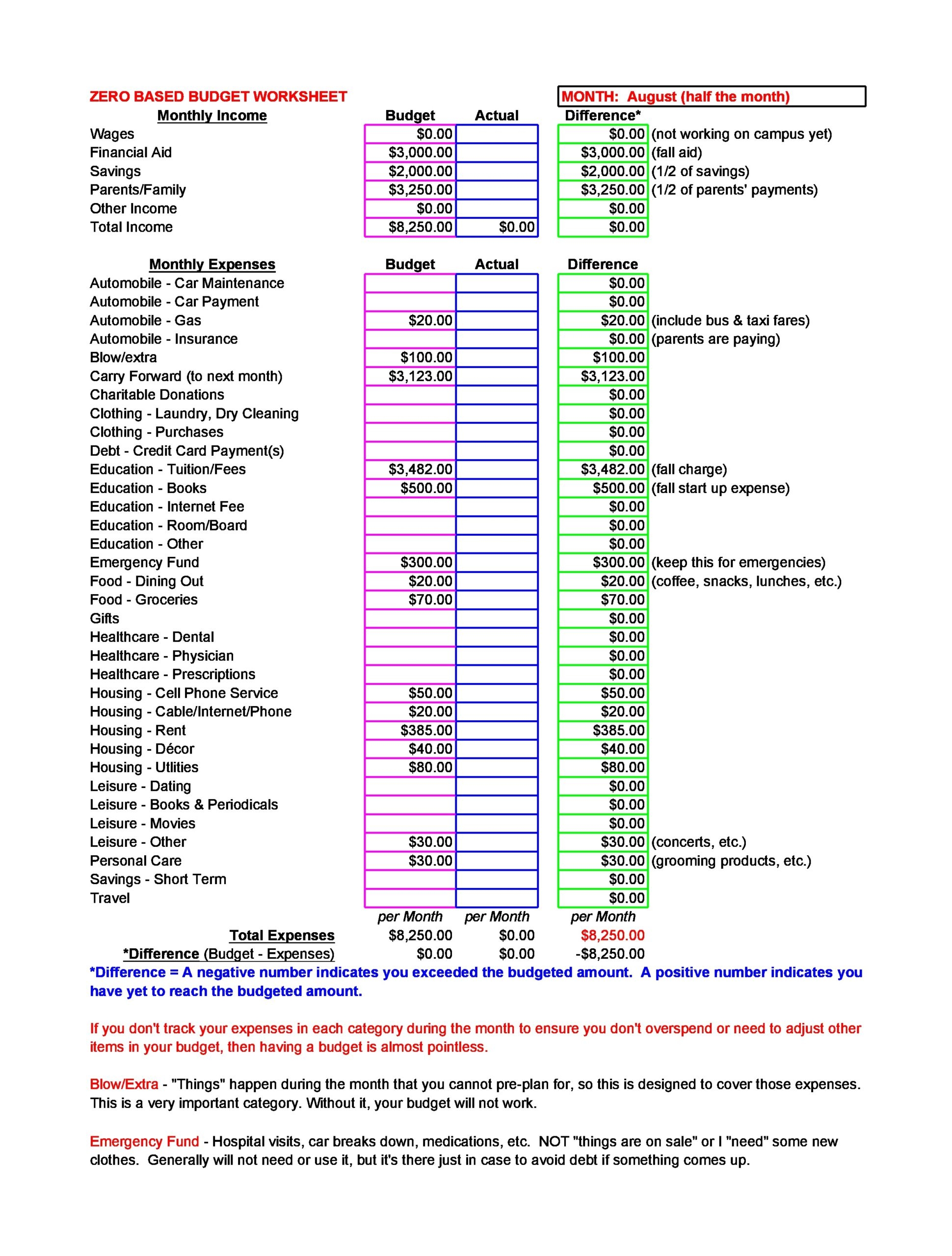 40 Best Zero Based Budget Templates Word U0026 Excel
