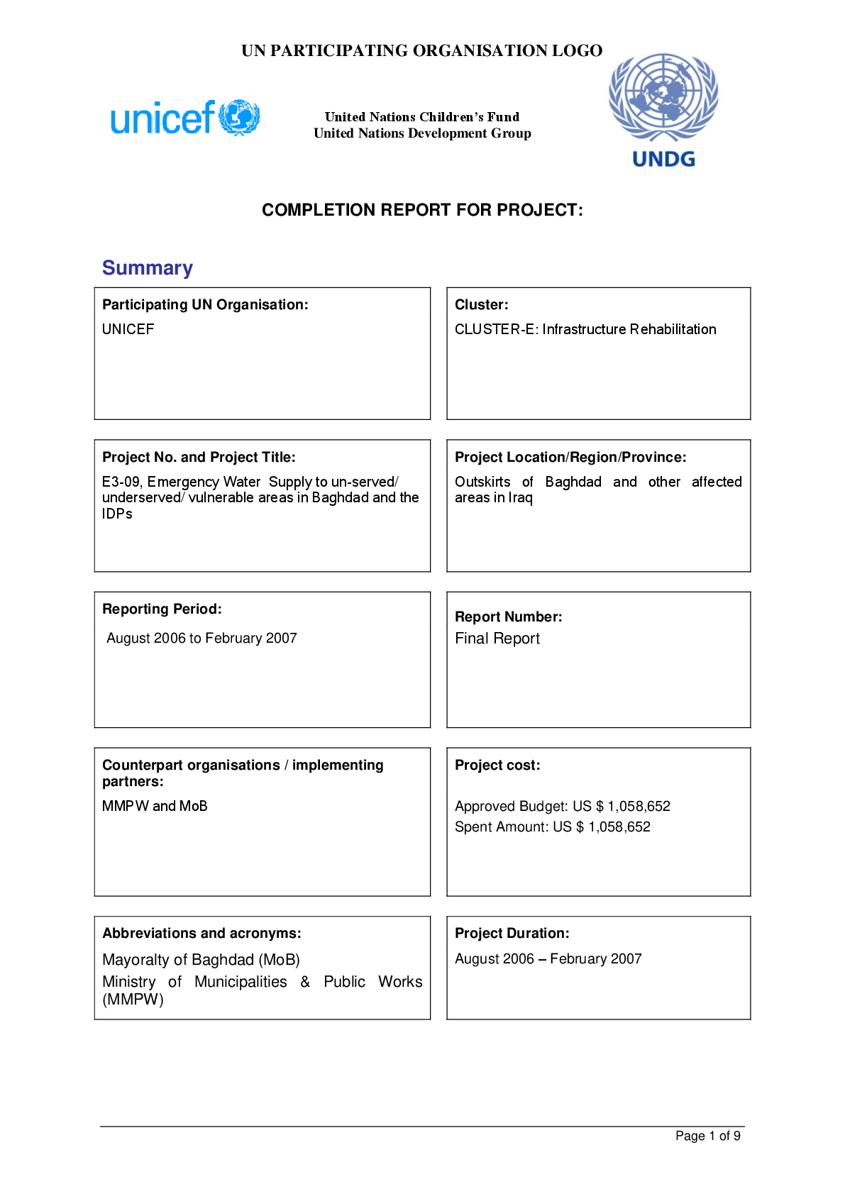 ITF E3 09 WTSN UNICEF Emergen MPTF Office