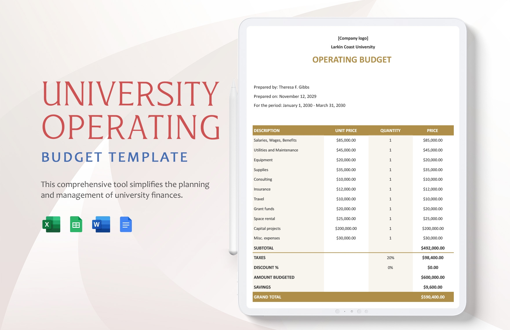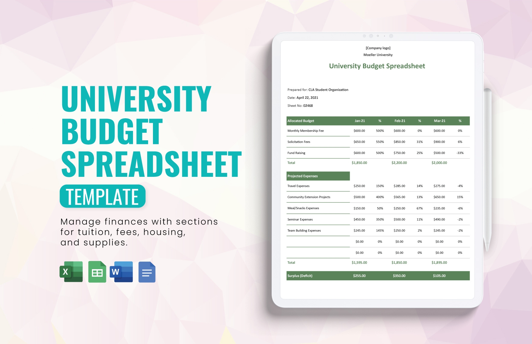 University Department Budget Template In Word Google Docs Google Sheets Pages Excel Download Template