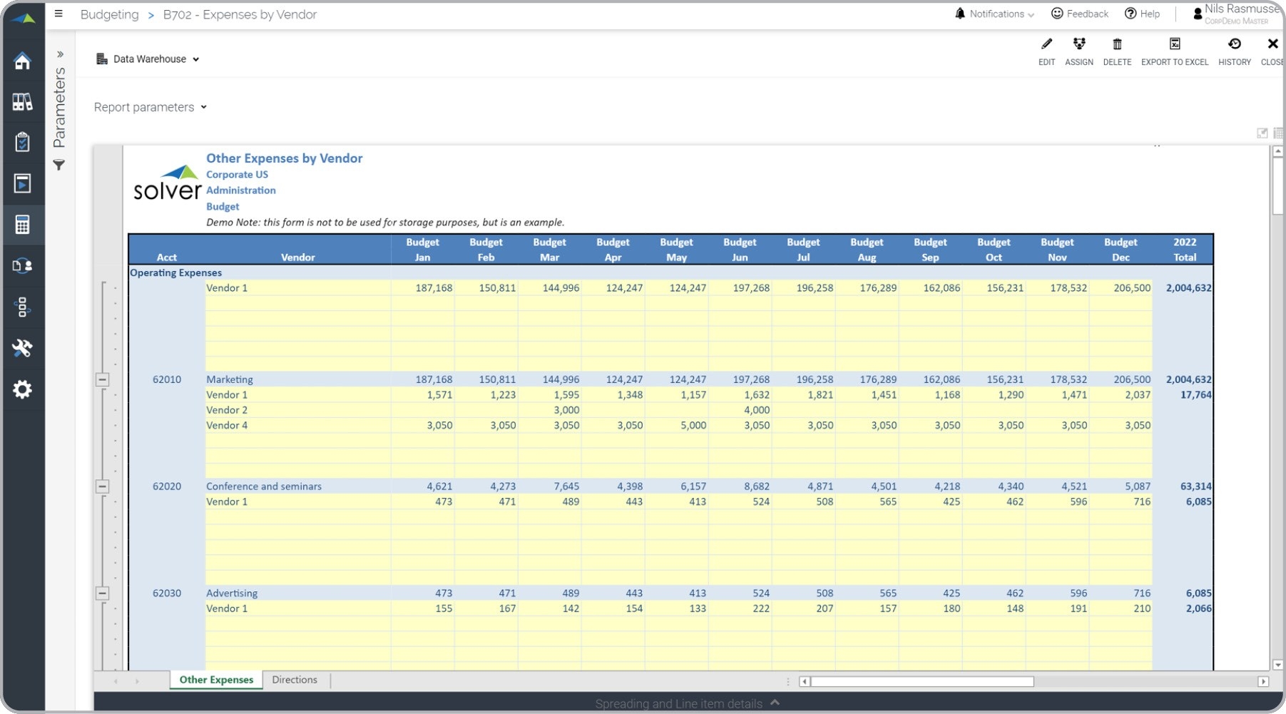 Vendor Expense Budget Input Form