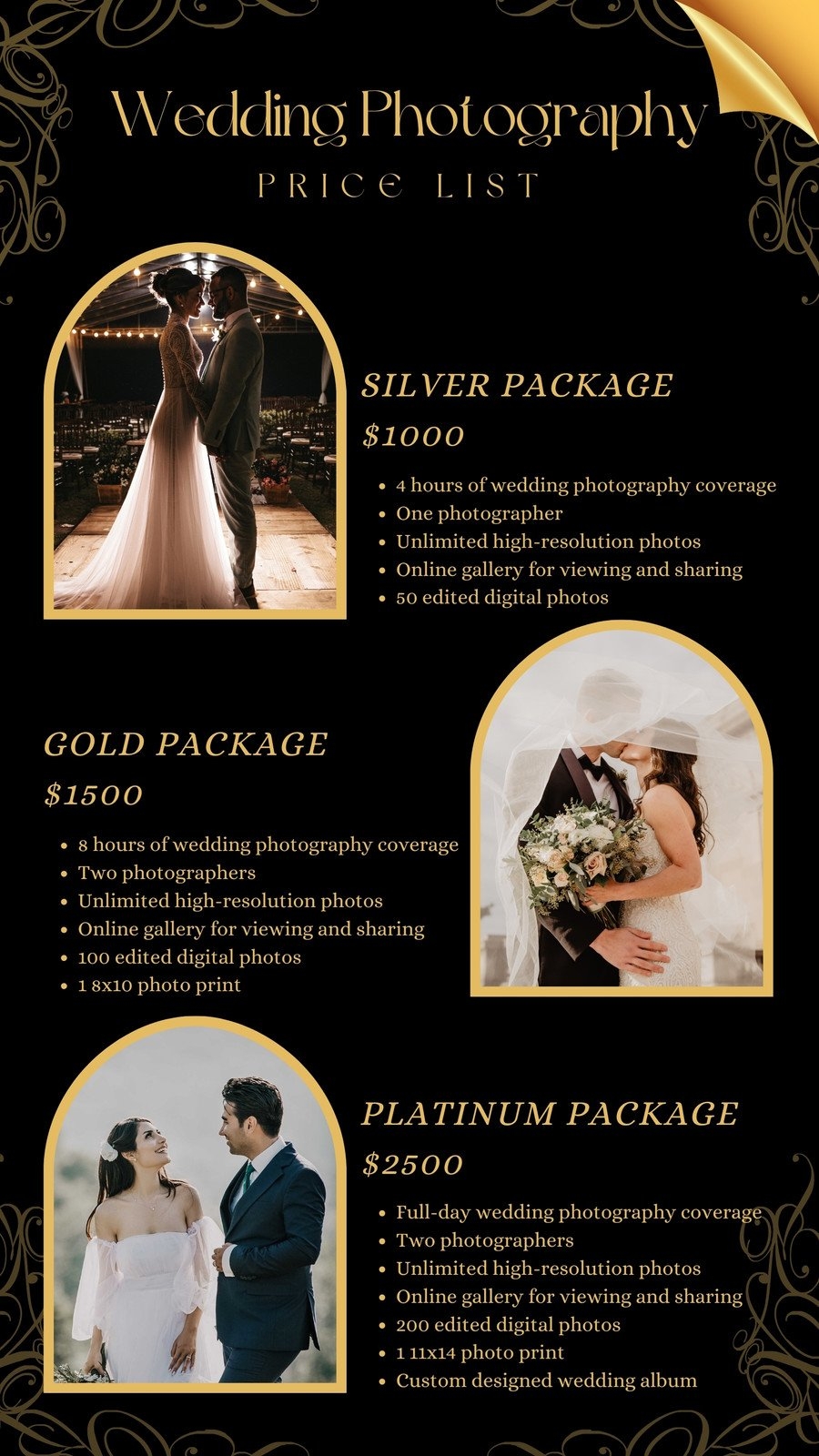 Start by listing all the elements of wedding photography you will need, such as the photographer’s fee, additional shooters, prints, albums, and any extra services. Research average costs in your area to get a realistic idea of what to budget for each item.