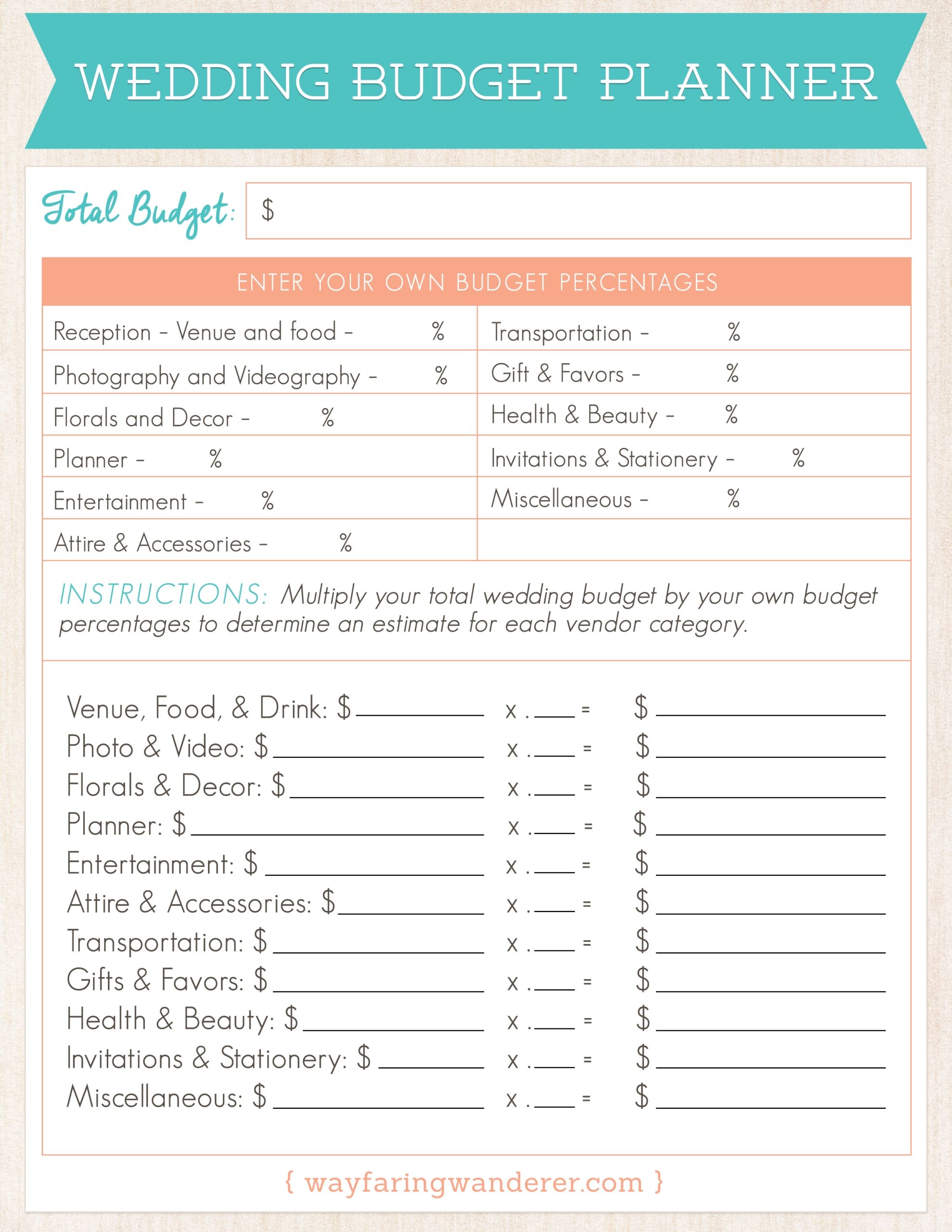 Wedding Planning Budget Worksheet Wayfaring Wanderer Boone NC