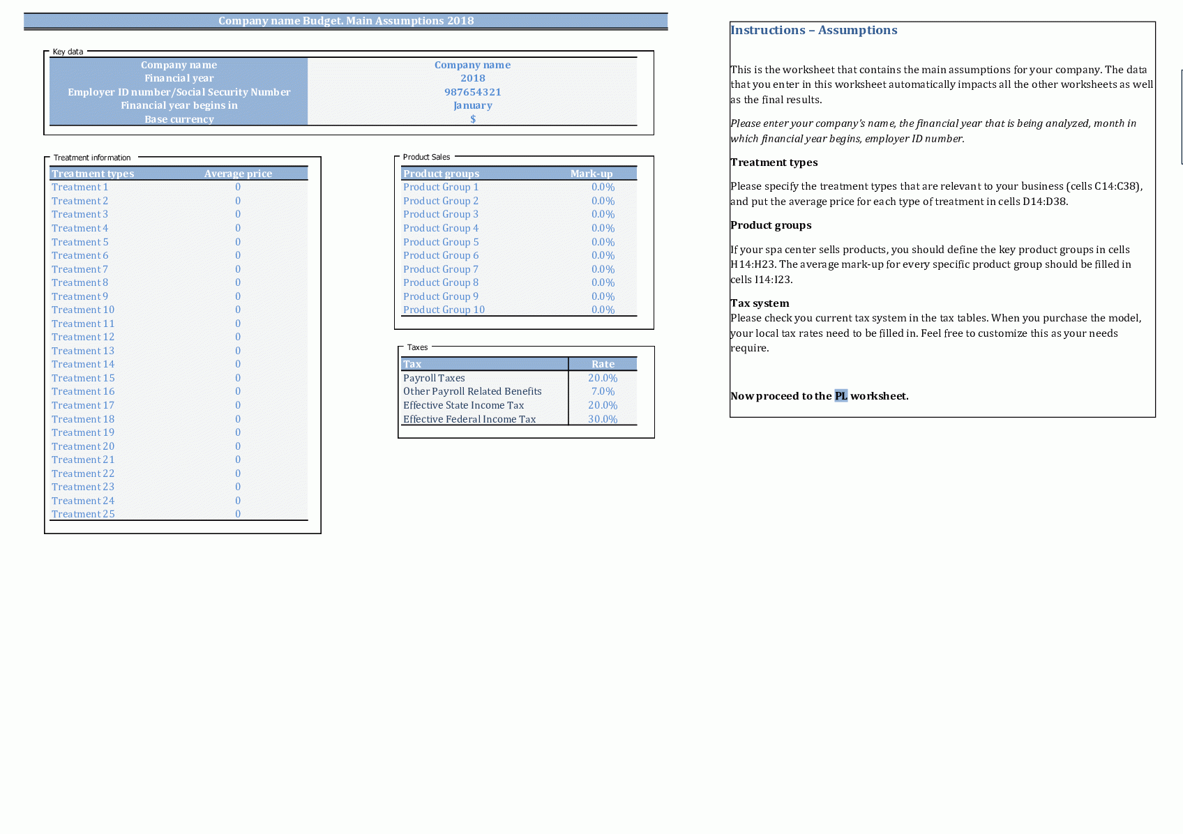 Wellness U0026 Spa Center Financial Planning Model Excel