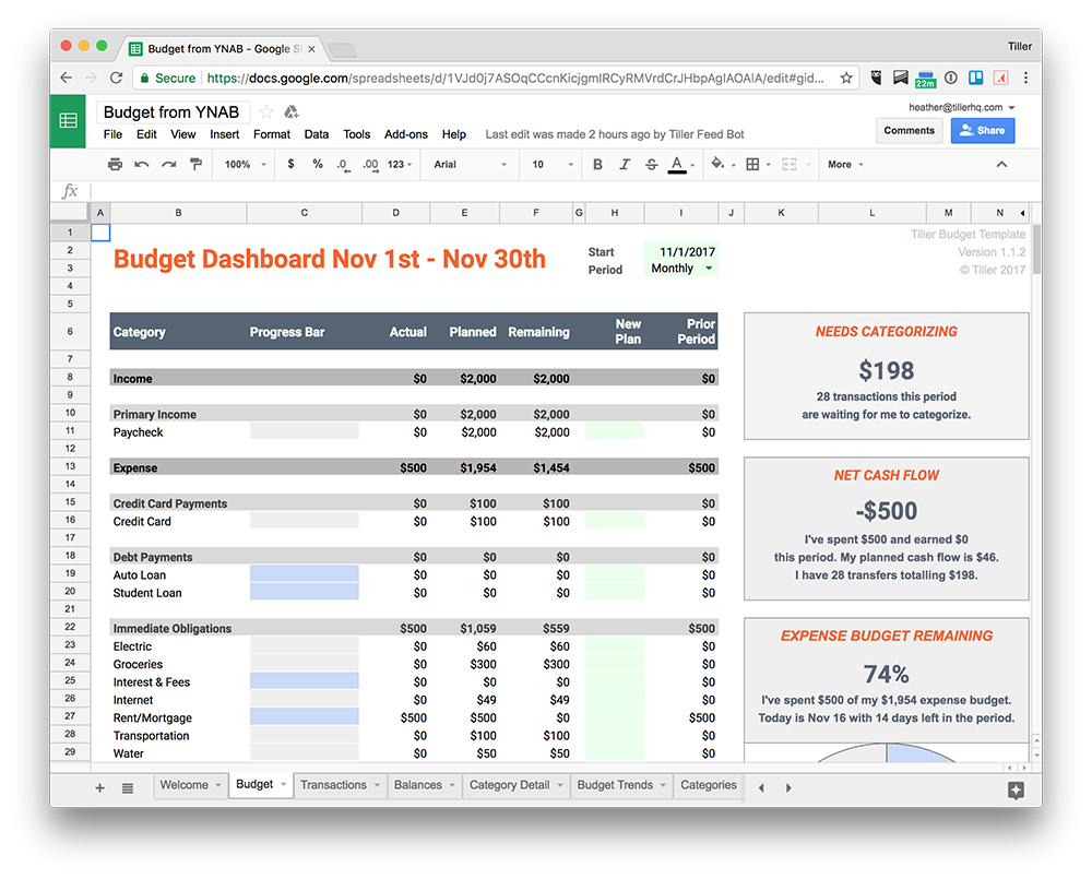 Get Your YNAB Budget Into An Automated Google Sheet Tiller