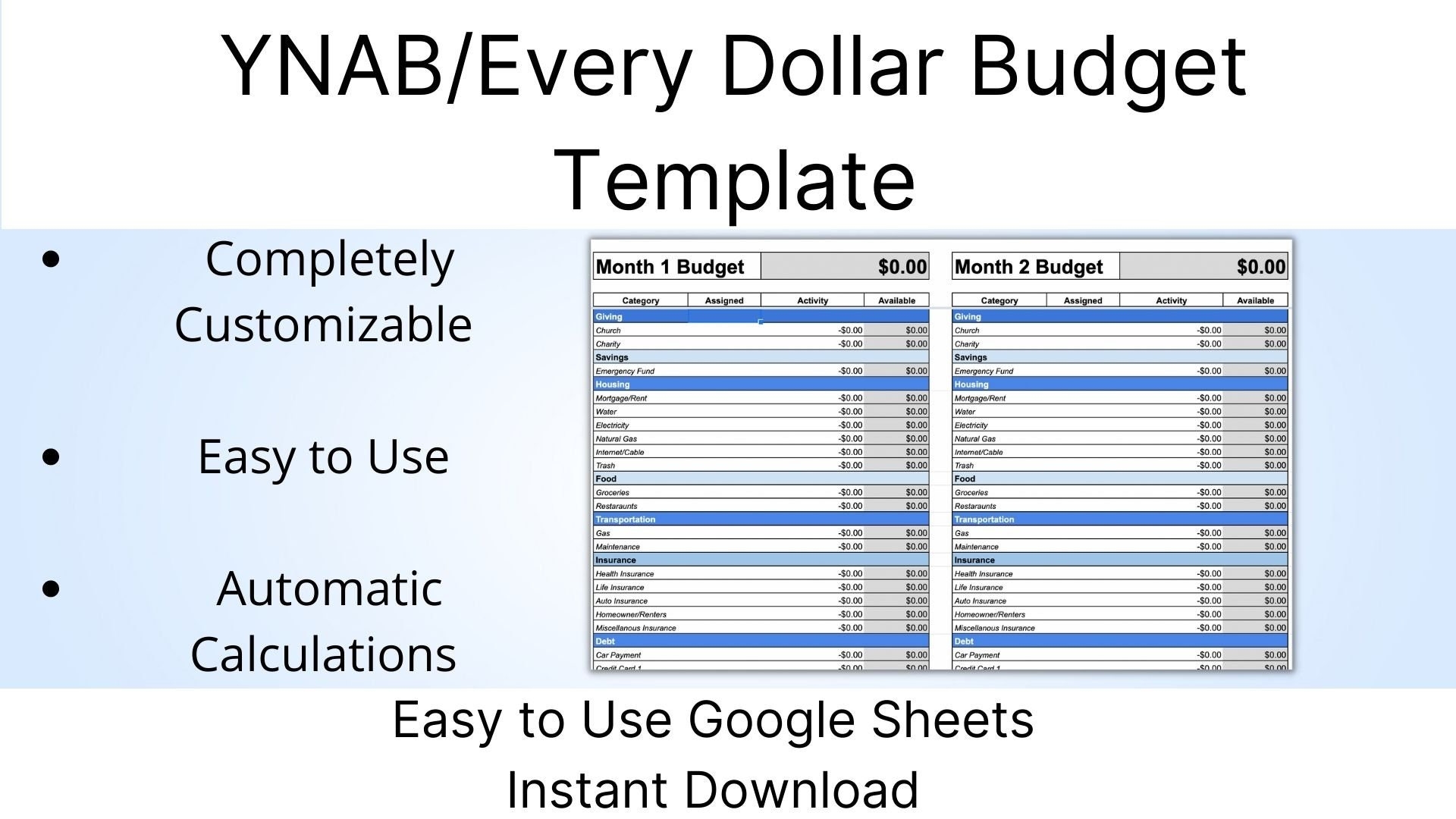 Monthly Budget Template YNAB Every Dollar Dave Ramsey