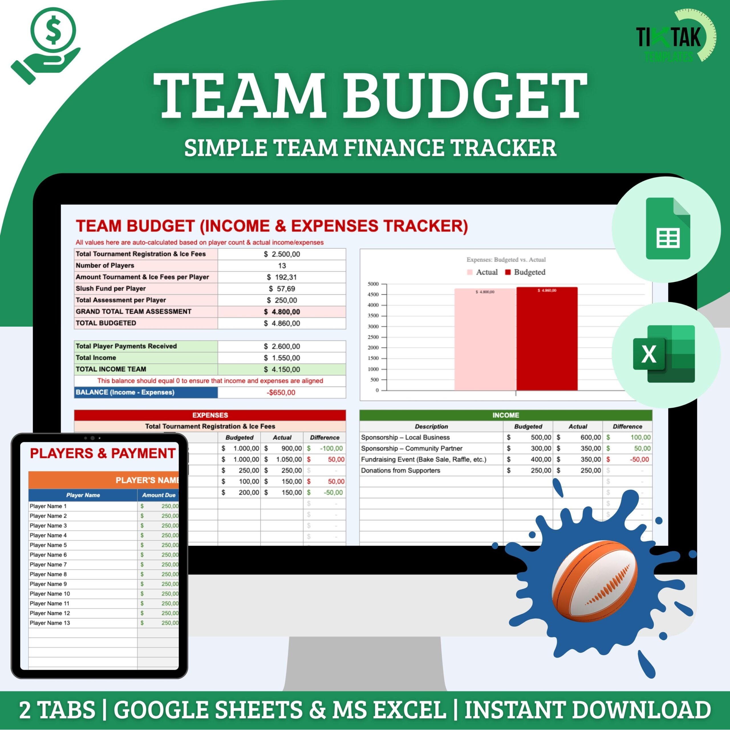 Youth Sports Team Budget Spreadsheet Team Manager Budget Template Excel Template Sports Team Manager Spreadsheet Team Manager Template